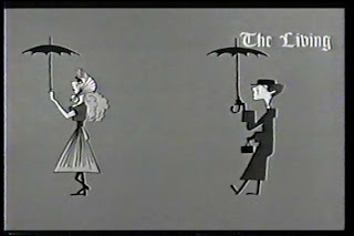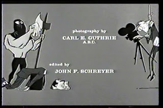 Falando em Hitch... seu discípulo mais empenhado, o espertalhão William Castle, parece ter se inspirado nos graciosos créditos de abertura de O Terceiro Tiro (1955) quando realizou seu primeiro filme de horror, Macabro (1958). O estilo não é o mesmo, mas o humor negro certamente sim. Não fica muito claro quem se encarregou dos desenhos animados que aparecem ao final do filme, creditando coletivamente os nomes de Jack Rabin, Louis DeWitt e Irving Block (confira a ilustração do caldeirão). Os três são conhecidos técnicos de efeitos especiais e produtores associados, principalmente em filmes de ficção científica da década de 50, mas é provável que Block tenha cuidado dos desenhos, seguindo o estilo de alguns populares cartoons da época.